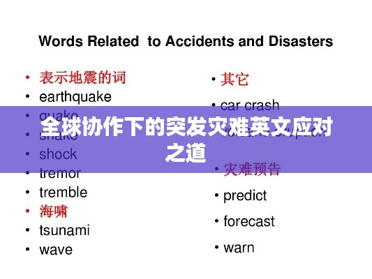 随着全球化的步伐不断加快,世界各地突发灾难的发生也变得越来越引人关注,这些突如其来的灾难,无论是地震、洪水、火山爆发还是其他形式的自然灾害,都对人类社会产生了深远的影响,由于这些灾难的不可预测性和快速扩散性,用英文进行沟通和协作变得尤为重要,本文将探讨突发灾难的应对,以及全球如何在英文的桥梁下共同应对这些挑战。